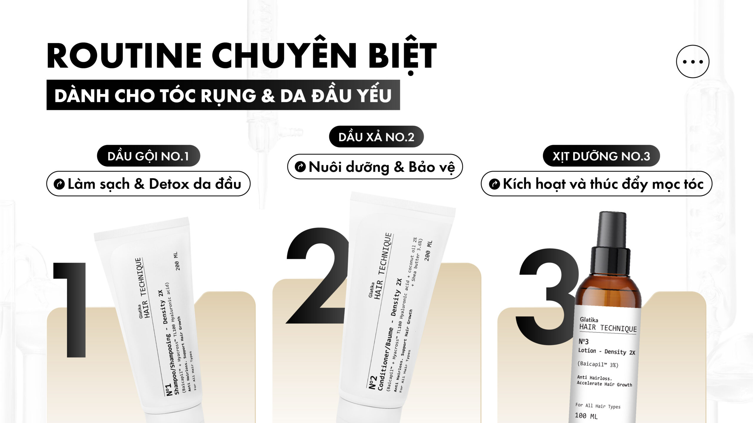 Bộ sản phầm dành riêng cho mái tóc mỏng yếu, gãy rụng. Vấn đề của bạn sẽ được cải thiện từ sau 01 liệu trình