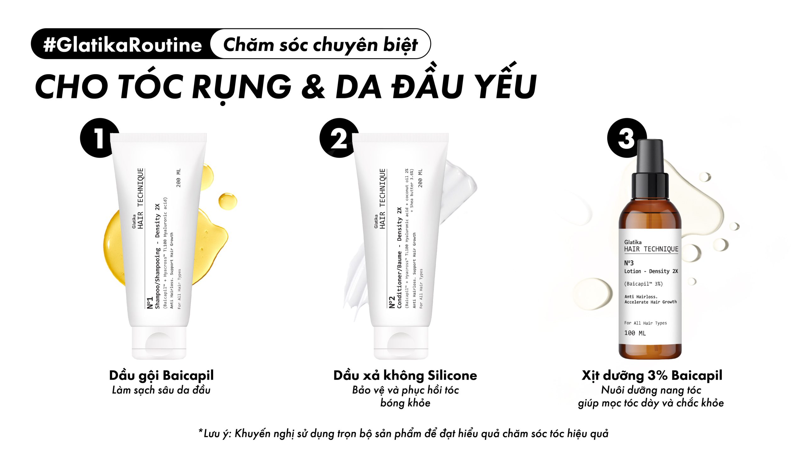Xịt mọc tóc Glatika – bước hỗ trợ chuyên sâu giúp tóc dày và khỏe từ gốc Khi da đầu đã được làm sạch và sợi tóc được phục hồi, bước tiếp theo là nuôi dưỡng nang tóc để giảm rụng và hỗ trợ mọc tóc mới. Xịt mọc tóc Glatika được thiết kế chính cho mục tiêu này: tạo môi trường da đầu khỏe, giúp nang tóc hoạt động hiệu quả hơn và tăng mật độ tóc theo thời gian.