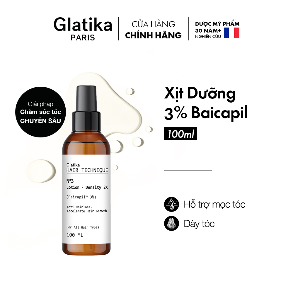 Nº3 – Density Lotion – Xịt dưỡng mọc tóc chắc khỏe Glatika Hair technique 3% Baicapil 100ml